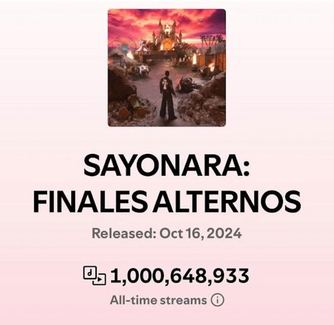 ‘SAYONARA: FINALES ALTERNOS’, EL CUAL INCLUYE EL TEMAZO “XQ ERES ASÍ” CON NATHY PELUSO QUE FUE NOMINADO AL LATIN GRAMMY 2025 COMO MEJOR CANCIÓN URBANA, SUPERÓ 1.3 BILLONES DE REPRODUCCIONES A NIVEL GLOBAL EL MES PASADO!
