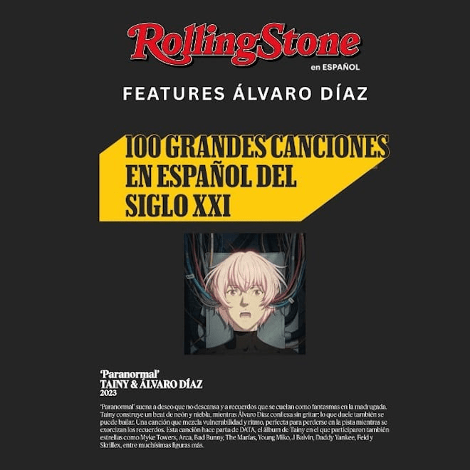 SU CÉLEBRE CANCIÓN “PARANORMAL” CON TAINY FUE INCLUIDA EN EL LISTADO 100 GRANDES CANCIONES EN ESPAÑOL DEL SIGLO XXI DE ROLLING STONE EN ESPAÑOL LA SEMANA PASADA