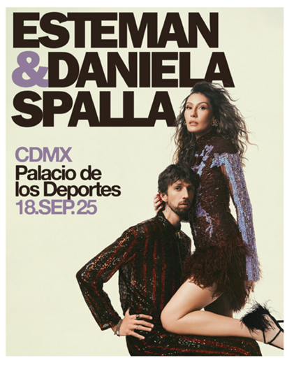 No te pierdas a Esteman y Daniela Spalla en su concierto más ambicioso el próximo 18 de septiembre en el Palacio de los Deportes en Ciudad de México.