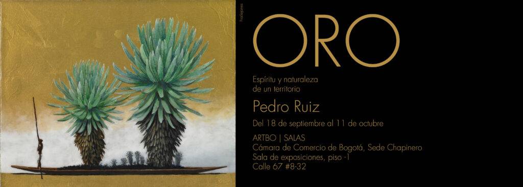 ORO, Espíritu y naturaleza de un territorio, es un proyecto artístico del maestro Pedro Ruiz que busca rescatar y resaltar la riqueza biocultural de Colombia. Esta exposición nos invita a mirar con nuevos ojos nuestro entorno, especialmente su riqueza multicultural y biodiversidad, para valorar mejor el legado que hemos recibido. El proyecto propone una mirada amable y generosa a lo que somos y, sobre todo, a lo que podemos ser. Se trata, en definitiva, de una apuesta por un futuro que reconcilie nuestras diferencias, nos reúna como nación y aporte en el cuidado de nuestra riqueza natural y cultural.
