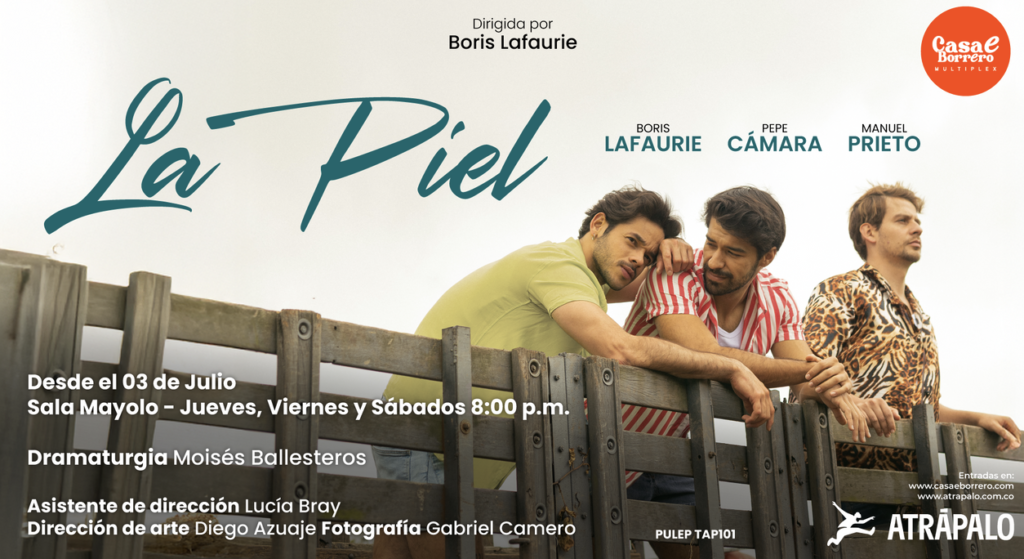 El Teatro Casa E Borrero se complace en presentar LA PIEL, una obra conmovedora que te invitará a una profunda reflexión sobre el amor y la condición humana. Jules (Pepe Cámara), Leo (Boris Lafaurie) y Carlos (Manuel Prieto) se enfrentan a la cruda realidad de su existencia, desafiando la noción de que el amor puede ser una salvación.