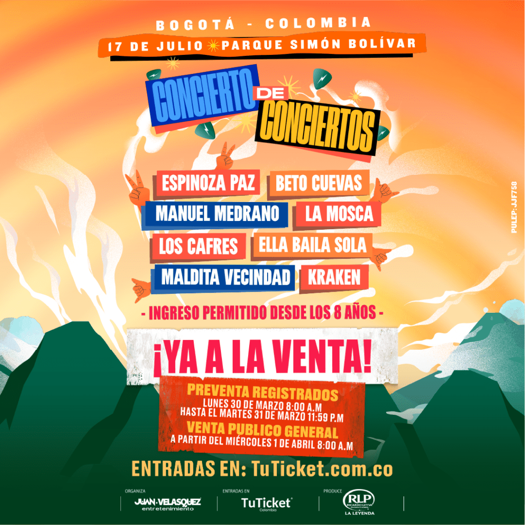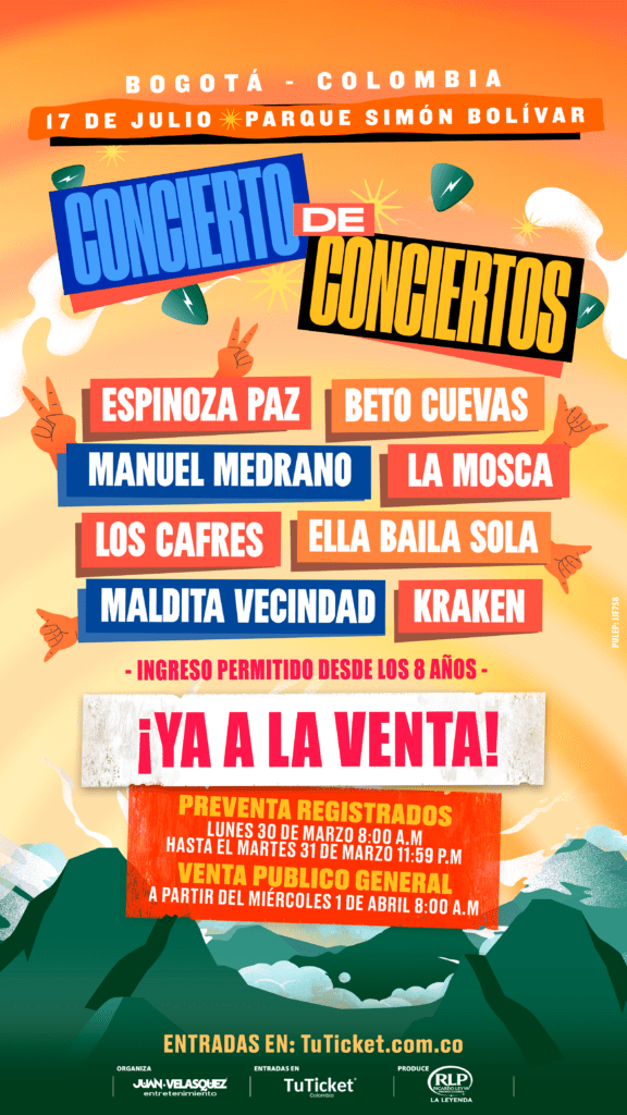 Bogotá, Colombia — La capital se alista para vivir uno de los espectáculos más esperados del año: Concierto de Conciertos 2026, el próximo 17 de JULIO en el SIMÓN BOLÍVAR un encuentro musical sin precedentes que reunirá en un mismo escenario a algunos de los artistas más influyentes del Rock y Pop.