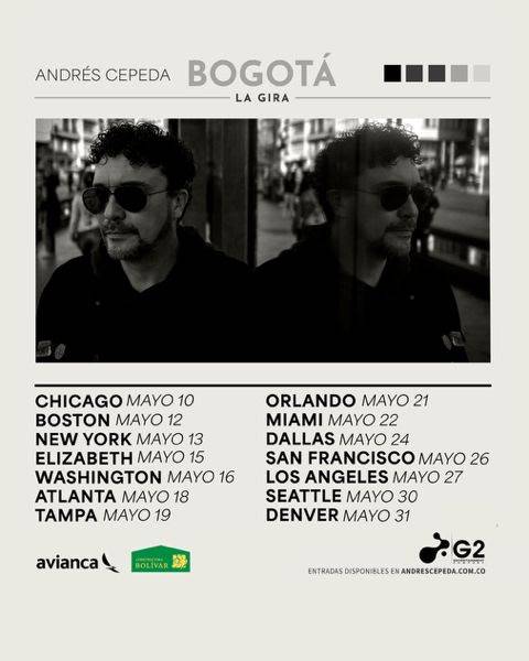 Miami, FL — Abril 27 de 2026 — El reconocido cantautor colombiano Andrés Cepeda anuncia su esperado regreso a los escenarios internacionales con Bogotá La Gira, una serie de conciertos que se llevará a cabo del 10 al 31 de mayo de 2026 en distintas ciudades de Estados Unidos, presentando en vivo su más reciente álbum Bogotá junto a los grandes éxitos que han definido su carrera.