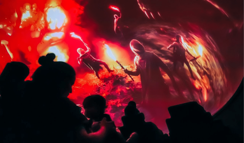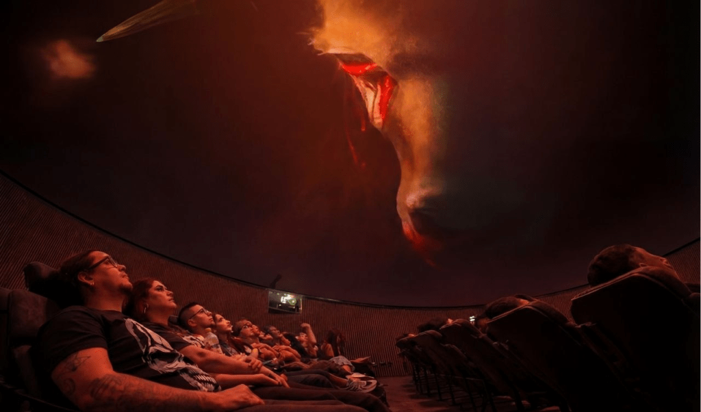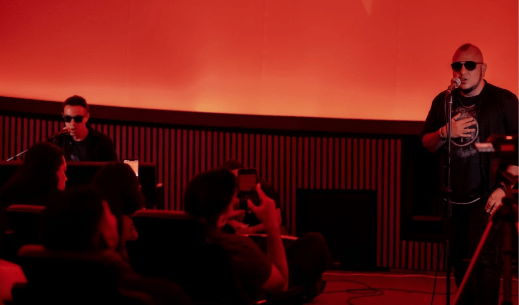La intención de la agrupación de ofrecer experiencias distintas a su público se ratificó en la escucha inmersiva. La proyección de las portadas animadas en 3D sobre la cúpula del domo, junto con la reproducción íntegra de cada canción y el conversatorio posterior, reafirmó la naturaleza conceptual del proyecto y su propósito de articular emoción y reflexión en una misma experiencia. A esto se sumó la adaptación en formato acústico en vivo de ‘Sclavus II – shade of freedom’, octava pieza de ‘Drâma’, que expandió el universo de la banda hacia un terreno más íntimo y dio cierre a un evento sin precedentes en el país.