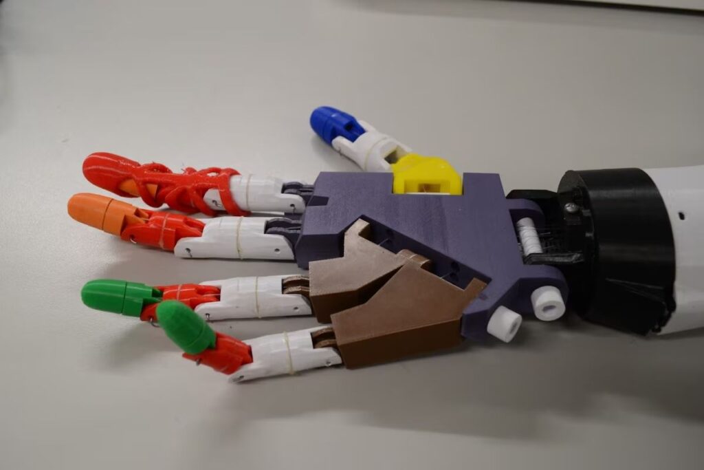 Prótesis Transradial Biónica de mano de bajo costo. Los estudiantes Jorge Ninantay, estudiante de la carrera de Ingeniería Mecatrónica, y Héctor López, de Bioingeniería diseñaron una prótesis de mano funcional que combina tecnologías como la impresión 3D y sistemas electromiográficos, posicionándose como una alternativa funcional y asequible frente a las costosas opciones comerciales disponibles en el mercado, porque el costo de su producción no pasa de los 500 soles.