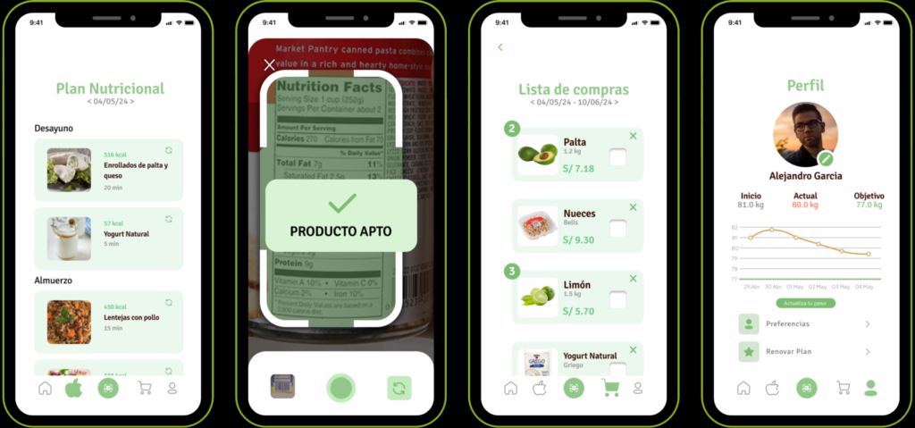 Sweetdiet: alimentación saludable en personas con diabetes. El estudiante César Pajuelo, de la carrera de Ciencia de Datos, creó SweetDiet, una aplicación que ayuda a personas con diabetes a hacer compras saludables. Esta app escanea códigos de barras de productos y ofrece recomendaciones basadas en el perfil del usuario.