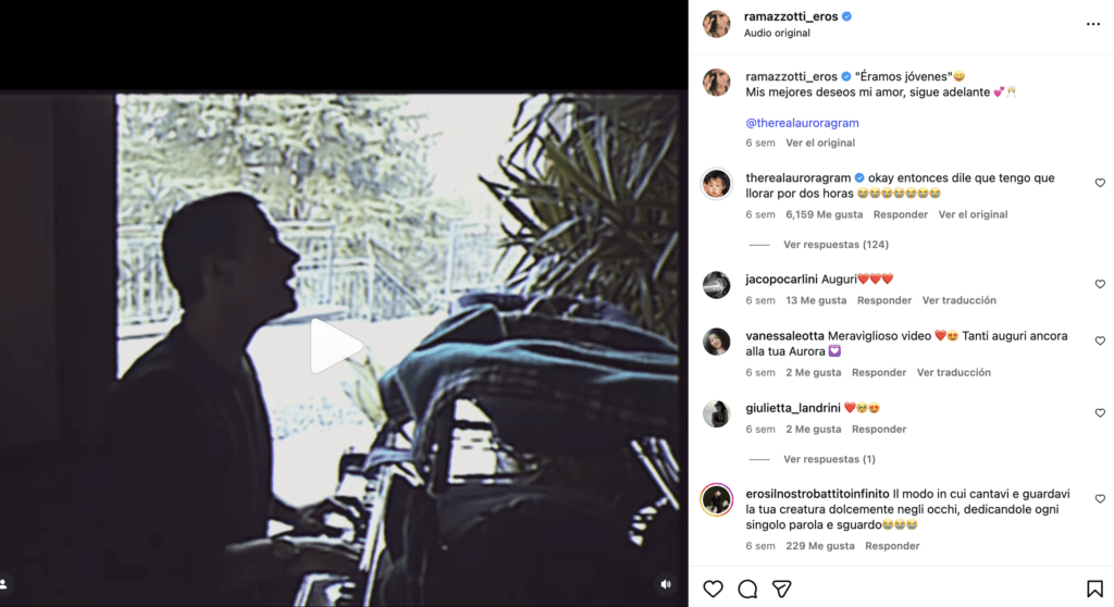 Para Eros, Aurora no solo fue su primera hija, sino también la experiencia que lo transformó para siempre como padre. Ese sentimiento quedó plasmado en “L’Aurora”, una canción lanzada originalmente en 1996 como parte de su álbum Dove c’è musica, y que desde entonces es considerada una de las piezas más íntimas de su carrera.