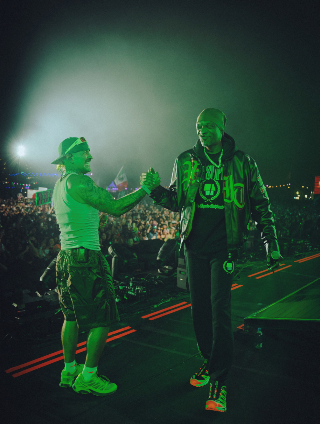 Ambos artistas encendieron el escenario con interpretaciones conjuntas de los clásicos de Snoop, “The Next Episode” y “Drop It Like It’s Hot”, fusionando el hip-hop de la costa oeste con los ritmos globales del movimiento urbano latino, generando uno de los momentos más memorables del festival.