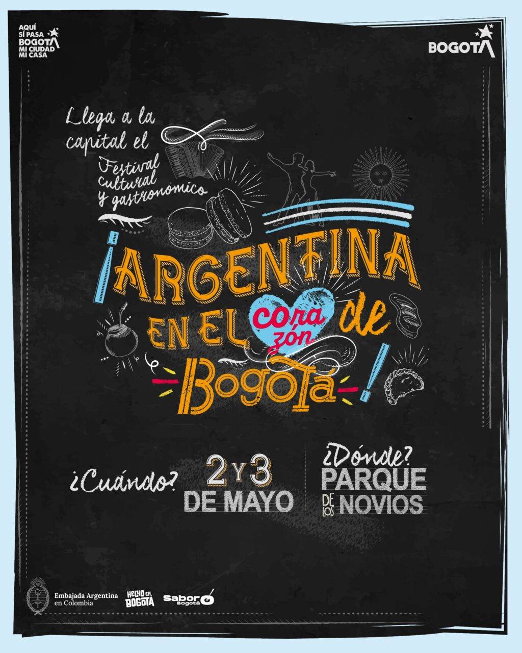 - Los próximos 2 y 3 de mayo, en el Parque de los Novios, la capital será el epicentro de una experiencia única que celebra la cultura, la gastronomía y los lazos de cooperación entre un país y una ciudad que trabajan de la mano: “Argentina en el corazón de Bogotá”. Un festival que contará con la participación de 16 establecimientos de comida y 10 emprendimientos locales.