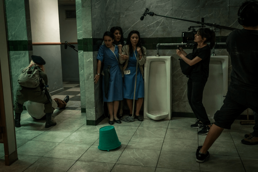 Encerrados por 27 horas en un baño, resistiendo el fuego cruzado, la línea entre rehenes y guerrilleros se desdibuja cuando lo único que pueden hacer es esperar. Afuera, una brutal operación militar para retomar el edificio; adentro, una batalla por conservar la humanidad.