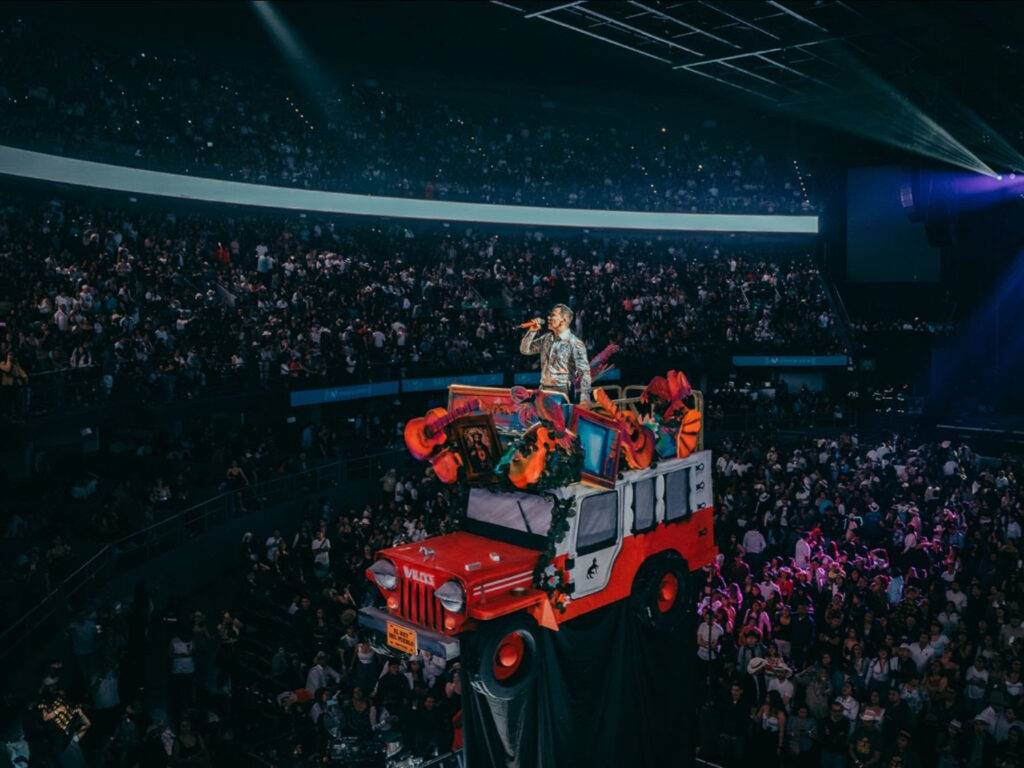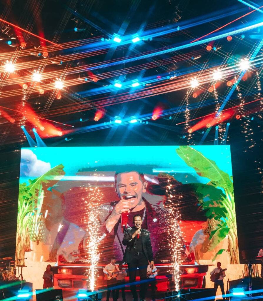 La puesta en escena también estuvo marcada por la sorpresa: la entrada de Jhon Alex Castaño hizo creer a los espectadores que se trataba de un fan irrumpiendo en el escenario, desatando la euforia en el Movistar Arena. Otro momento especial contó con la participación de Patricia Silva, ícono de Sábados Felices, con quien el cantante revivió el recordado video de la canción “Mejor Solito” y rompió la cuarta pared, aportando un matiz teatral a la introducción del himno tropical.