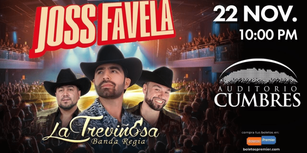 Será el próximo sábado 22 de noviembre cuando Joss Favela llegue nuevamente a Monterrey, y el Auditorio Cumbres será el recinto perfecto para esta reunión especial. Cabe destacar que no llega solo, pues “La Treviñosa” Banda Regia vestirá de gala la noche. La preventa exclusiva ya se encuentra disponible a través del sitio boletospremier.com y en puntos de venta físicos: Boxx Office Auditorio Cumbres y Liberato Eatery, SPGG.