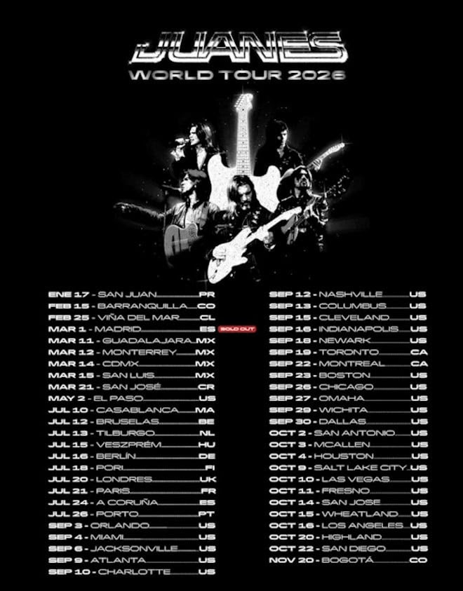 Tras su presentación en Vive Latino 2026, la gira Juanes World Tour 2026 continuará conectando con fans en Latinoamérica, Europa y Norteamérica, con shows que combinarán el concepto visual y musical de JuanesTeban con sus grandes éxitos de más de 25 años de carrera.
