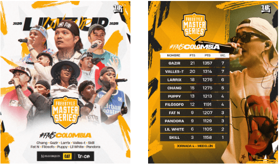 Con más de 400 mil visualizaciones en Youtube y audiencias que superan los 30 mil espectadores simultáneos, la FMS Colombia se posiciona como un punto clave del freestyle latinoamericano.
