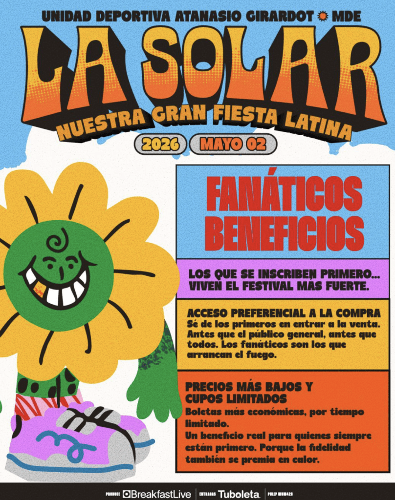 A La Solar le quedó chiquita la casa. Con un crecimiento que ha superado todas las expectativas y una comunidad que cada año multiplica su energía, el festival más caliente del planeta anuncia oficialmente su nuevo hogar: el Complejo Deportivo Atanasio Girardot, que recibirá la próxima edición este 2 de mayo de 2026.
