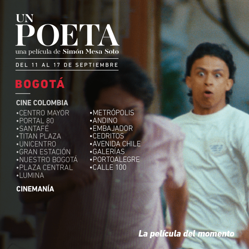 Bogotá, 12 de septiembre de 2025 – La película colombiana UN POETA, dirigida por Simón Mesa Soto, entra a su tercera semana de exhibición y se mantiene en la cartelera nacional gracias a la respuesta del público. Con más de 100 mil espectadores, el público continúan llenando funciones y buscando en las salas una de las historias más comentadas del cine colombiano reciente.