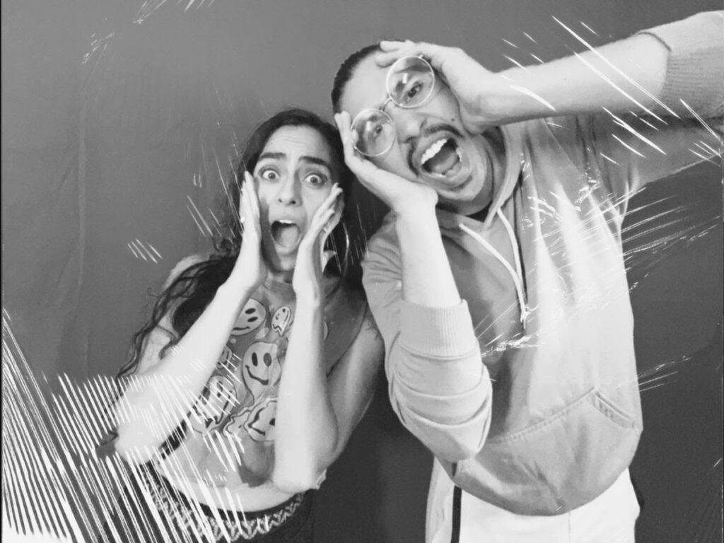 En el universo visual de «Eso Aquí No», cada canción tiene su propio visualizer animado, protagonizado por Tachín y Nena, dos hermanos bogotanos que funcionan como el espejo simbólico de las emociones que atraviesan las canciones.