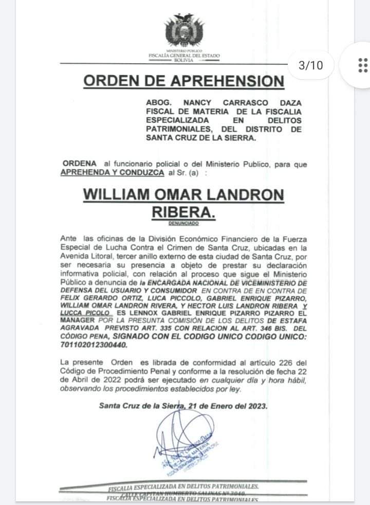 La Fiscalía Especializada en Delitos Patrimoniales de Santa Cruz en Bolivia emitió una orden de aprehensión contra el reguetonero DON OMAR éste sábado, por la presunta comisión de los delitos de Estafa Agravada.