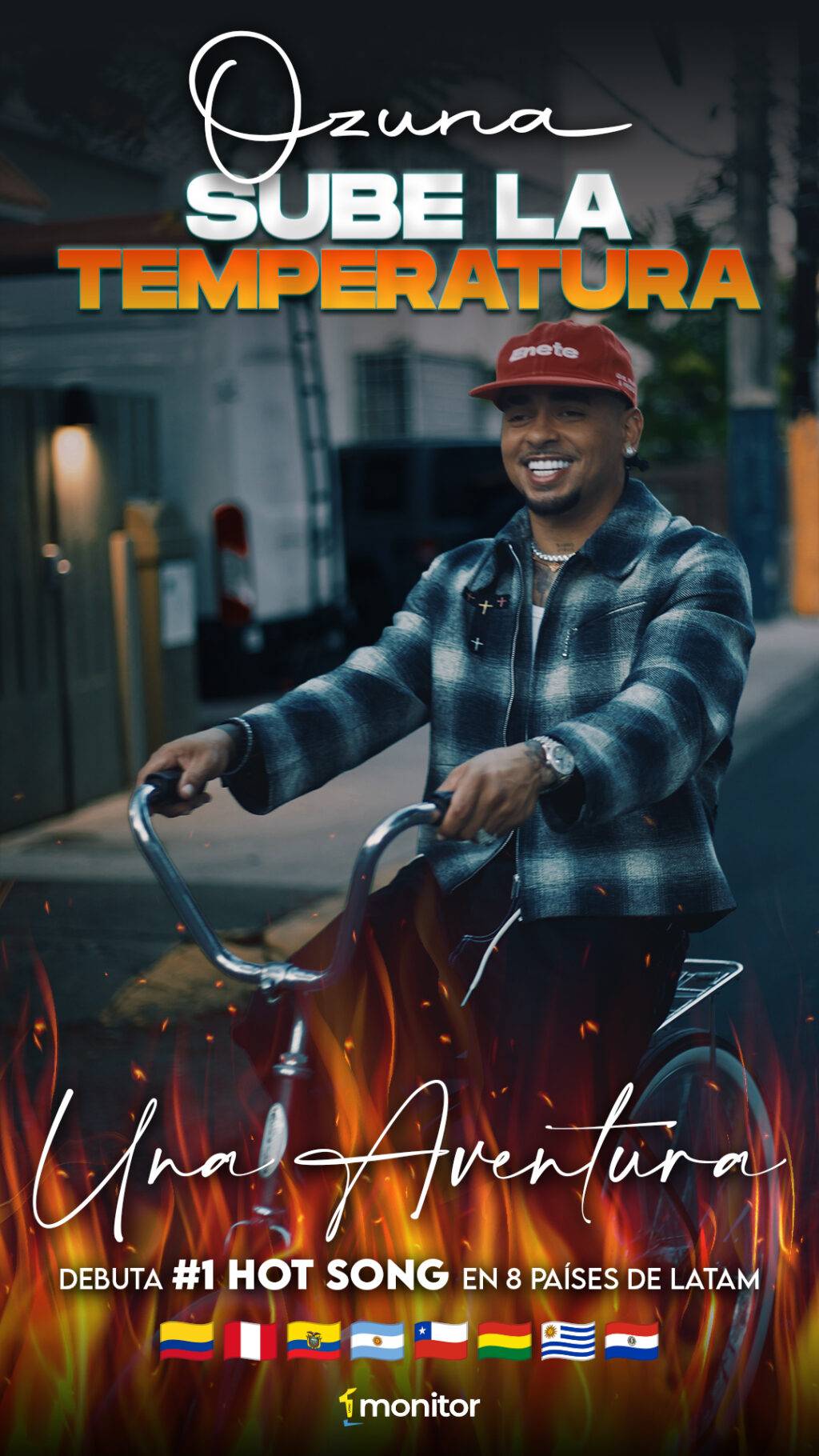 El fenómeno global Ozuna vuelve a dominar la escena musical con el impactante debut de su más reciente sencillo, “Una Aventura”, que alcanza el puesto #1 en el chart Hot Song General en ocho países de Latinoamérica: Colombia, Perú, Ecuador, Argentina, Chile, Bolivia, Uruguay y Paraguay. A este hito se suma su consolidación en Europa, donde también logra el #1 en el Hot Song Pop Rhythmic en España.