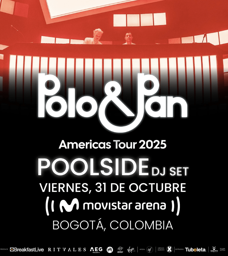 Tras girar por escenarios icónicos como Coachella, Red Rocks y L’Olympia, y con su tercer álbum 22:22 consolidado como su trabajo más maduro, Polo & Pan llegan a Colombia para envolver al público con una producción de gran formato que confirma por qué son considerados pioneros de la electrónica contemporánea.