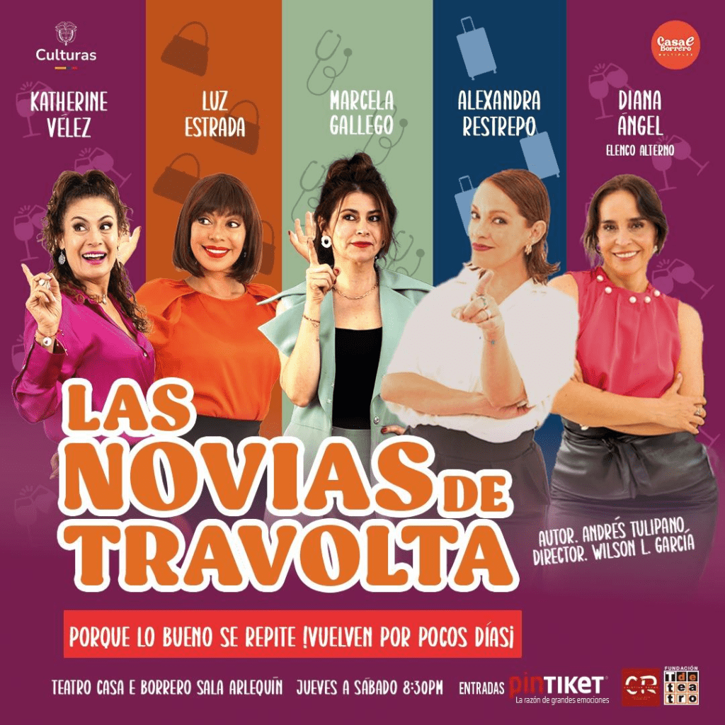 Protagonizada por un gran elenco encabezado por Katherine Vélez, Alexandra Restrepo, Luz Estrada, y Marcela Gallego, Las Novias De Travolta es una comedia íntima y muy realista que se estrenó el pasado 9 de febrero, bajo la dirección de Wilson León García @eldelteatro y que al día de hoy ha logrado reunir familias enteras, varias generaciones, grupos de amig@s e incluso se ha convertido en un buen plan de pareja, les ha permitido reírse de ell@s mismas. Esta obra es posible en Colombia gracias a la producción que asocia a T de Teatro y Cristina Rodas y ha conseguido en un corto tiempo de temporada posicionarse como la comedia del año por la temática que desarrolla y el balance perfecto en escena, mezcla de comedia, música, baile y unos apuntes muy colombianos.