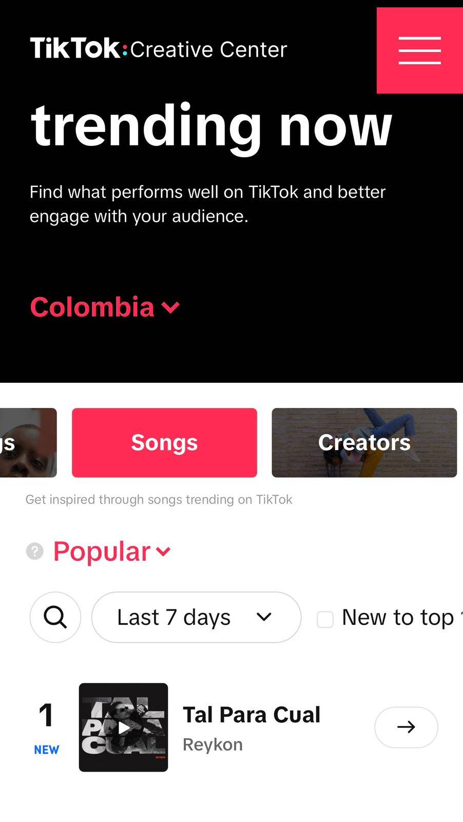 Reykon continúa marcando tendencia en redes sociales, su canción Tal Para Cual se posiciona como tendencia #1 en TikTok Colombia, consolidándose como uno de los audios más virales de la plataforma.