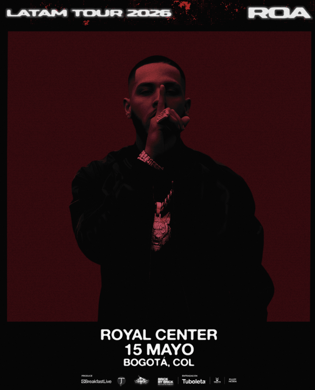 El próximo 15 de mayo, el Royal Center será el epicentro del trap en Bogotá con la llegada de “ROA LATAM TOUR”, uno de los artistas puertorriqueños que viene marcando una nueva etapa dentro del género urbano.