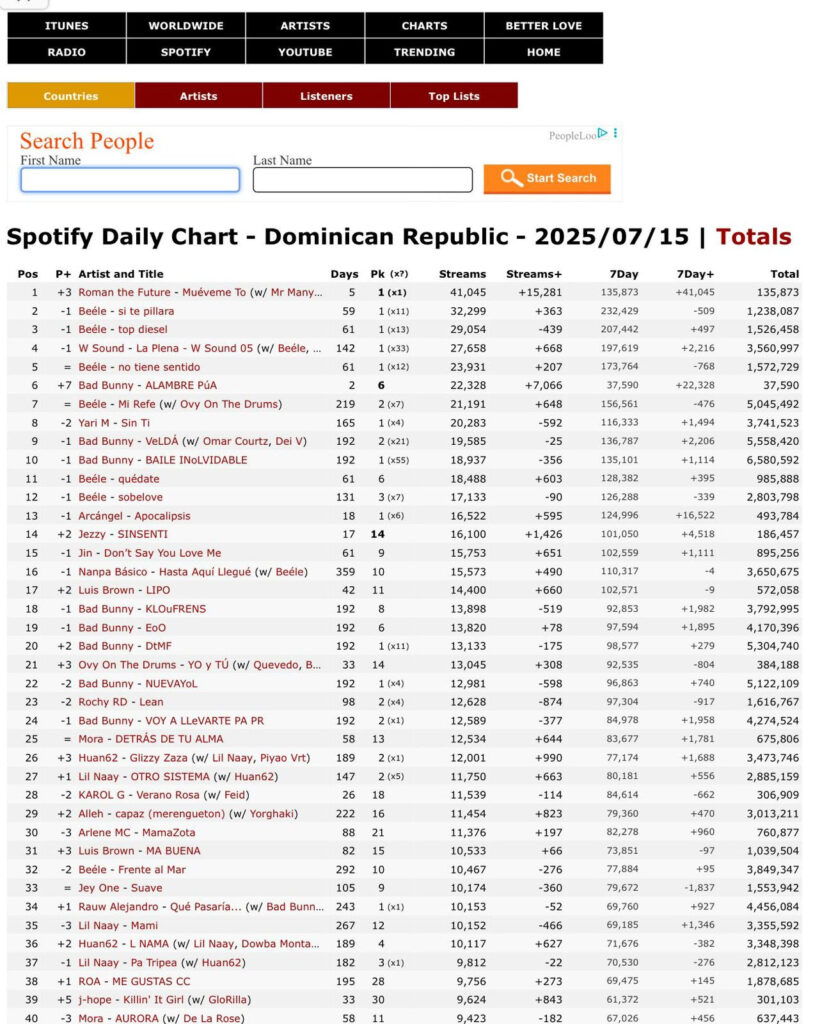 Bogotá, Colombia / Santo Domingo, República Dominicana – Julio de 2025. El artista urbano colombiano Roman The Future, nacido en Medellín, ha logrado un hit histórico en la música urbana latinoamericana al conquistar la cuna del dembow: República Dominicana. Su más reciente sencillo, “Muéveme To”, en colaboración con Mr Manyao —reconocido como el creador y figura fundamental del dembow dominicano—, ha alcanzado el puesto #1 del Top 50 de Spotify en República Dominicana en cuatro ocasiones distintas desde su lanzamiento, rompiendo récords y posicionándose por encima de gigantes del género como Arcángel, Beéle y el mismísimo Bad Bunny.