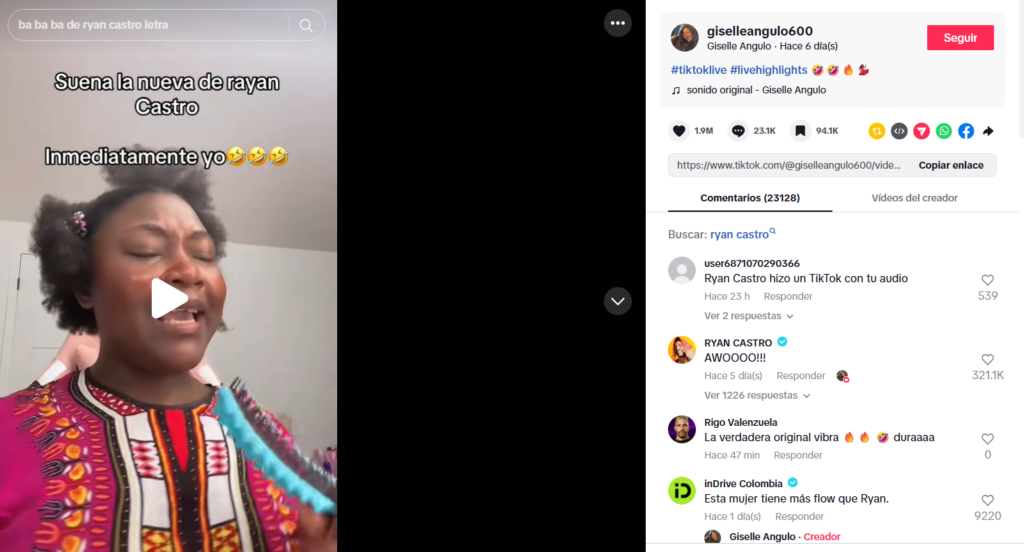 En medio del furor digital, un video publicado por la usuaria @giselleangulo600 se convirtió en el más viral relacionado con la canción, alcanzando más de 23 millones de reproducciones en TikTok, donde la fan recreó su propia y poderosa versión del hit.