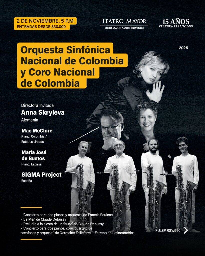 Y por último, pero no menos importante, SIGMA Project actuará como solista junto a la Orquesta Sinfónica Nacional de Colombia, el domingo 2 de noviembre en el Teatro Mayor (5:00 p.m.) y como parte del cartel del “Concierto para dos pianos, coro, cuarteto de saxofones y orquesta sinfónica” de la compositora francesa Germaine Tailleferre, única mujer que integró el famoso Grupo de los Seis (Francia), a principios del siglo XX.