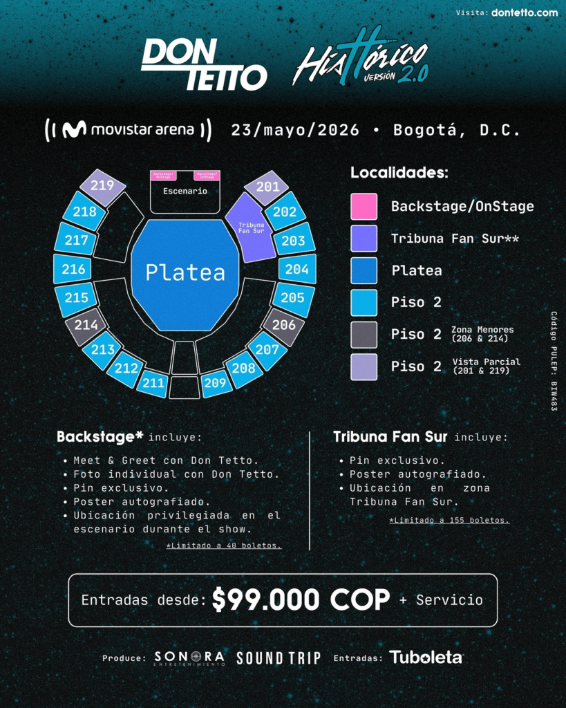 En este reencuentro con su fiel público en el escenario más importante de Colombia, la banda hará un recorrido por su trayectoria musical interpretando más de 30 canciones en vivo (en especial esos temas que no estuvieron presentes en el show del 2024), acompañada de una producción y puesta en escena que sorprenderán una vez más a sus sequidores.