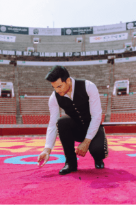 Mediante una toma aérea sobre un monumental tapete de 1,500 m2, el cantante develó que llegará a la mítica plaza...