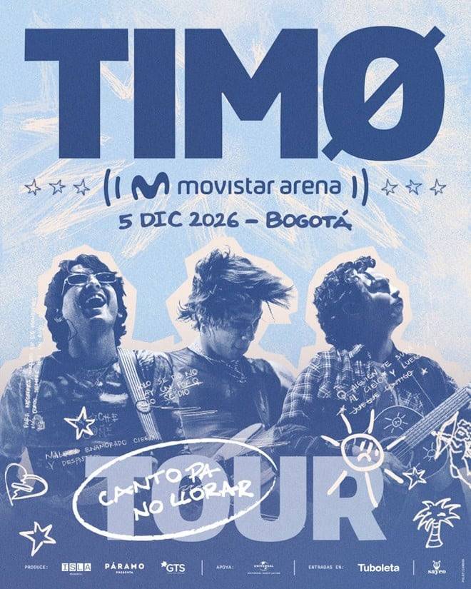| En medio de un momento clave en su carrera, la banda bogotana TIMØ anuncia su primer Movistar Arena el próximo 5 de diciembre del 2026. Este, sin duda será uno de los momentos más importantes en la carrera musical de Andy, Alejo y Pepa quienes juntos han logrado llegar a millones de personas con su música y su talento. |