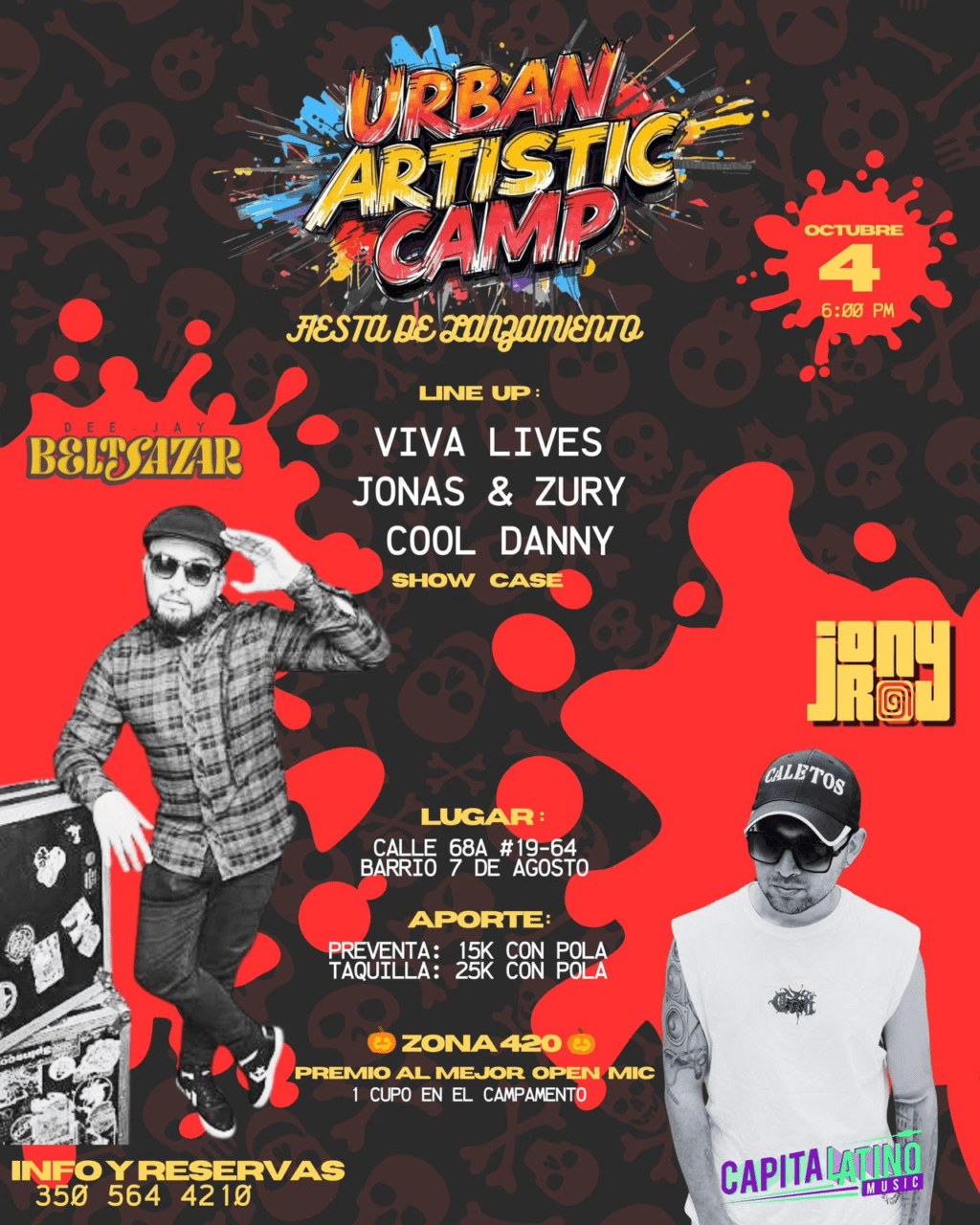La velada contará con las presentaciones de Dee Jay Beltsazar, Jony Roy, Vivas Lives, Jonas & Zury y Cool Danny, quienes encenderán la energía con mezclas y propuestas musicales urbanas. Además, durante la fiesta se premiará al mejor MIC con un cupo directo al campamento.