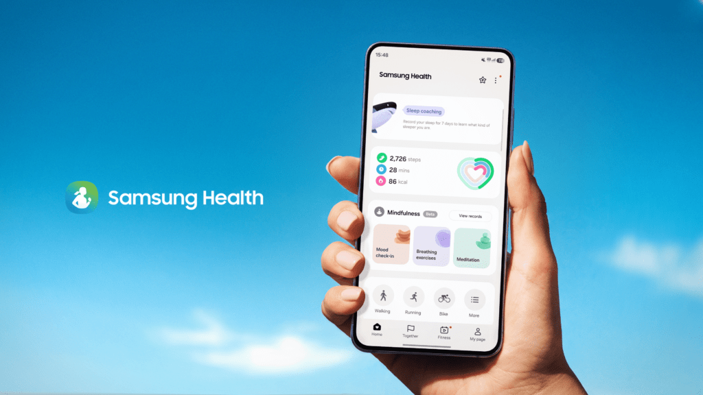 Samsung Health ofrece una visión completa del bienestar al integrar el seguimiento de la actividad física, la alimentación, el descanso y métricas corporales en una sola plataforma.